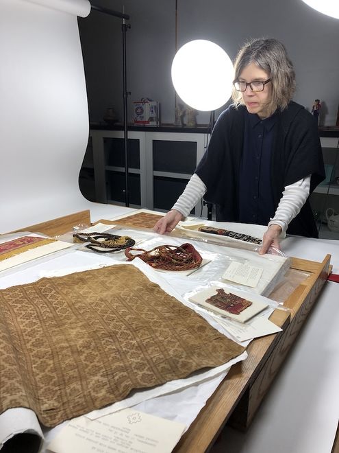 Emma Cormack, an alumna of BGC’s MA program and curator of the Study Collection, said she chose to attend BGC, in part, because she knew that she would have unfiltered access to the Study Collection. “Nothing compares to being able to handle objects and really understand what they are made of and how they were made and used. When you aren’t allowed to handle them, you can use a loupe, and you can look closely, but being able to feel the differences between materials and weave structures, for example, between your fingers is something you can’t do otherwise. So on top of the really robust pedagogical approach that students get at BGC, the Study Collection is a wonderful enhancement.”