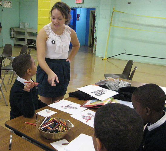 For BGC students, this program provides an opportunity to gain professional experience as educators at work within a variety of school communities. Graduate student docents participate in training workshops with education staff before heading out to schools. They receive mentoring and guidance around best practices in museum education while interacting with students at all grade levels, and they learn to create connections between the school curriculum and the content of each exhibition. These important skills give BGC students a valuable advantage when they go on to seek positions in museums or educational institutions.