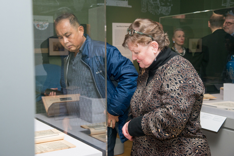 On March 23, receptions celebrated the opening of the spring Focus Projects: New York Crystal Palace 1853 and Design by the Book Chinese Ritual Objects and the Sanli tu. Guests visited the Galleries to enjoy the exhibitions and mingle over drinks and hor d’oeuvres. Pictured above are (from left) Professors Ivan Gaskell, Head of the Focus Gallery Project, and François Louis, curator of Design by the Book, with Gallery Director Nina Stritzler-Levine.