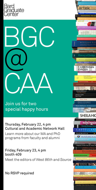 On Friday, February 23, at 4 pm, at Booth 409, meet the editors of the journals, West 86th Street West 86th: A Journal of Decorative Arts, Design History, and Material Culture and Source: Notes in the History of Art.