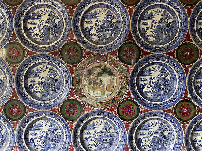 In nineteenth-century India, the popular Willow pattern transferware by Staffordshire found a new life as affixed ornamentations in palace interiors. Set into walls in original form, or broken into flat, rectilinear pieces to meticulously cover walls, niches, and balconies, Blue Willow plates and their luminous blue and white surfaces effectively framed gods and kings and created a multisensory experience of space. Taking two late nineteenth-century sites, Juna Mahal in Dungarpur and Junagadh Fort in Bikaner, as points of departure, Heeryoon Shin explores how the design and materiality of Willow ware, as well as its display, acquired new meaning and purpose in Indian palace spaces. Evoking the tradition of tiled ornamentation and the display of ceramics in the chini khana (“China room”) in India, while also referencing European porcelain rooms, the transferware-covered walls reveal the complex cultural negotiations and material and political aspirations of nineteenth-century India. By examining the Indian reuse of British transferware, this talk complicates the conventional narrative of West looking East and highlights the nonlinear and multidirectional flows of ceramic culture.